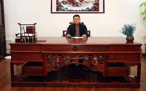江蘇中尊木業有限公司書房系列產品:書房五件套草龍書柜、草龍大班枱、卷書寶座椅,洋花寫字枱等。