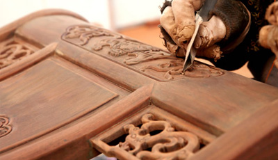 流程三雕刻工序 為了讓紅木家具看上去更美觀,在木工工序完成之后一般都會用一些或簡單或復雜的雕花來進行裝飾,也就是行業中所說的雕刻紋飾。雕刻紋飾必須在“認榫”完成后進行,因為“認榫”時需要修整,如果先做好雕花再開榫,紋理很難保證雕花部件都在同一平面上,而此時為了保證雕花...
